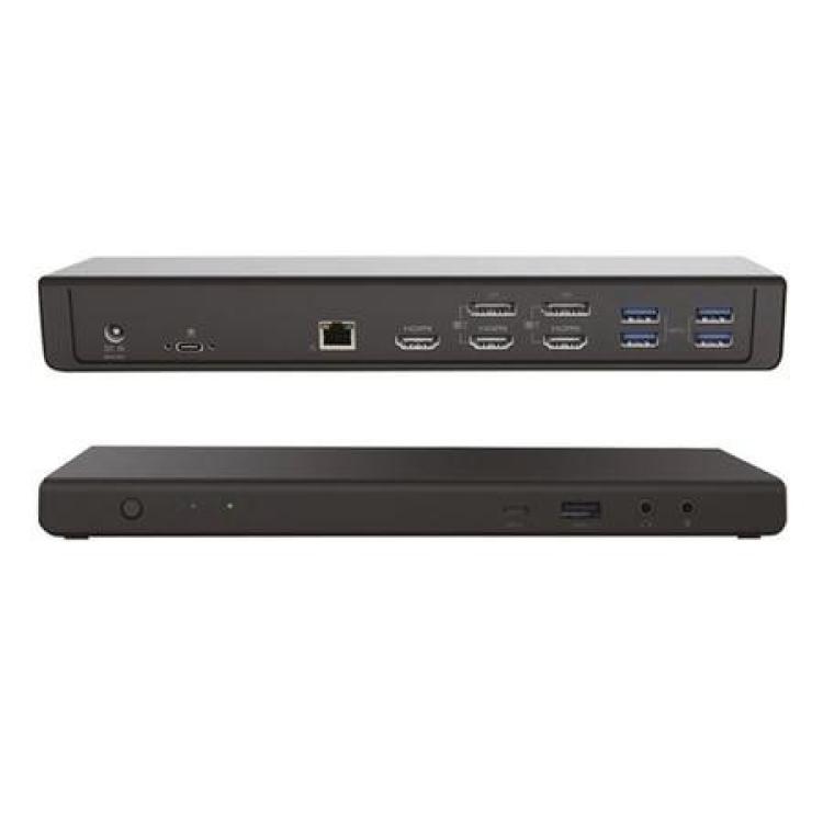 For all your USB peripherals, the 2-POWER? USB-C & USB-A Hybrid Triple 4K Docking Station features six USB ports (5 x USB-A 3.0 & 1 x USB-C). Two of the USB ports (1 x USB-A & 1 USB-C) are front mounted, always-on charging ports. There is also Gigabit Ethernet port for high-speed network connectivity and two audio/speaker port for both your headset and mic.