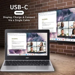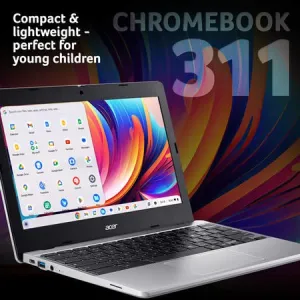 Running on Chrome OS, the Acer Chromebook 311 offers a simple and secure computing experience with access to a wide range of apps from the Google Play Store. Its long battery life of up to 10 hours makes it ideal for all-day use, whether in the classroom or on the go. The Chromebook's connectivity options include USB Type-C, USB 3.1, and a microSD card reader, ensuring you can easily connect peripherals and expand storage as needed.