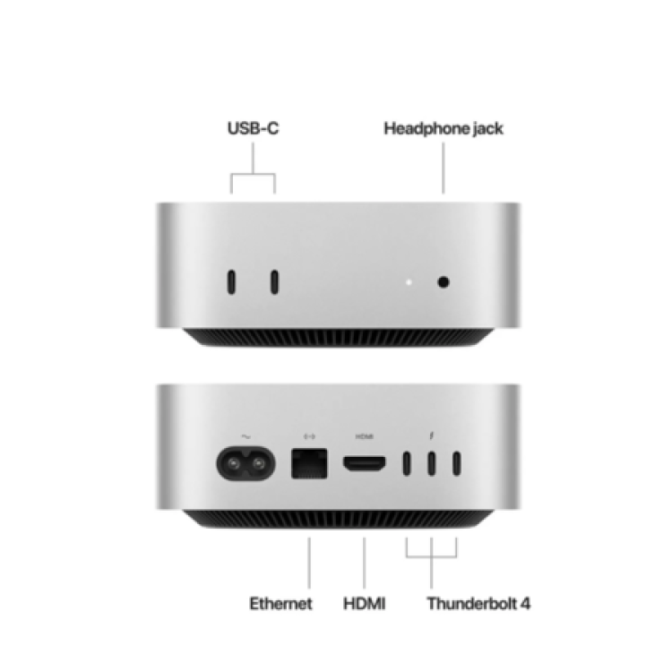 Now with M4, Mac mini delivers tremendous performance and next-level AI capabilities. Both chips feature the world’s fastest CPU core, so everything feels snappy and fluid. Thanks to a powerful GPU with hardware-accelerated ray tracing, you’ll experience incredibly realistic game graphics and smooth 3D rendering. And an advanced Neural Engine runs on-device Apple Intelligence at blazing speed.