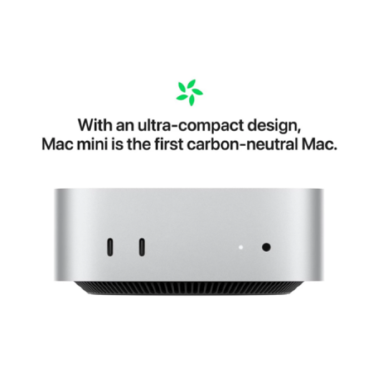 Introducing the far mightier, way tinier, all-new Mac mini. Five by five inches of pure power and purpose. Redesigned around Apple silicon to unleash the full speed and capabilities of M4 chip. With a wide array of ports, now on the front and back. Mac mini is the definition of efficiency — and the first carbon-neutral Mac. It truly is the little Mac that could.