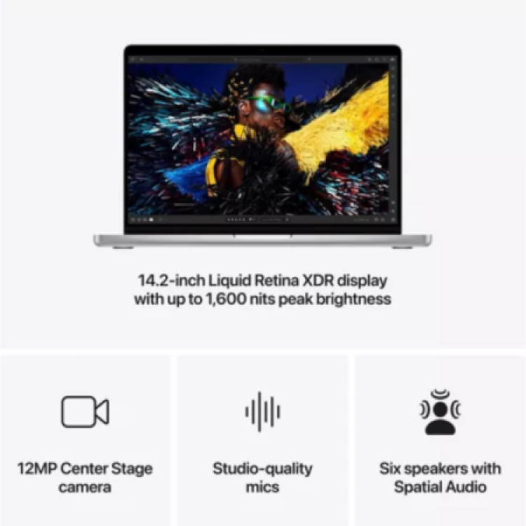 The 14-inch Retina display on this MacBook Pro offers breathtaking visuals with sharp details, vivid colors, and impressive brightness. Whether you're editing high-resolution images or watching 4K videos, the display delivers an immersive experience with true-to-life colors and excellent clarity.