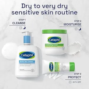 Apply Cetaphil Moisturising Cream over face and body to hydrate and protect dry or very dry sensitive skin from moisture loss.