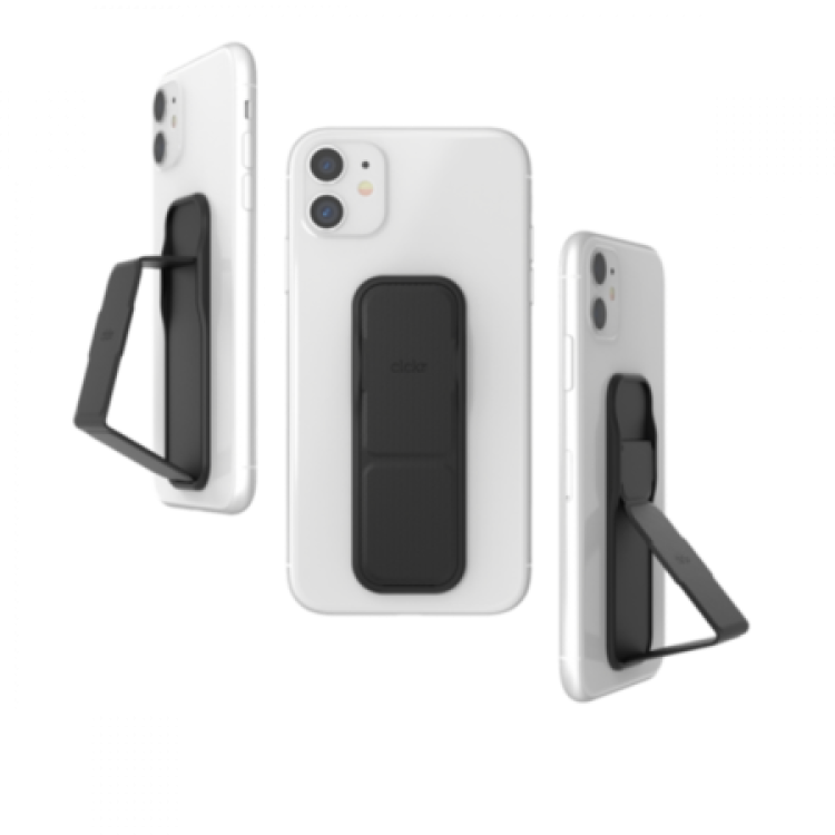 CLCKR is a patented universal and multi-functional phone stand and grip enabling a firmer hold, comfy handle and multiple viewing positions. It's easy to apply using 3M-adhesive and does not leave residue. CLCKR’s grip enables a firmer hold, safer use of your device and its stylish ultra-strong design is compatible with most wireless chargers. There are numerous uses for CLCKR including positioning your mobile phone in portrait, landscape or conference call mode.