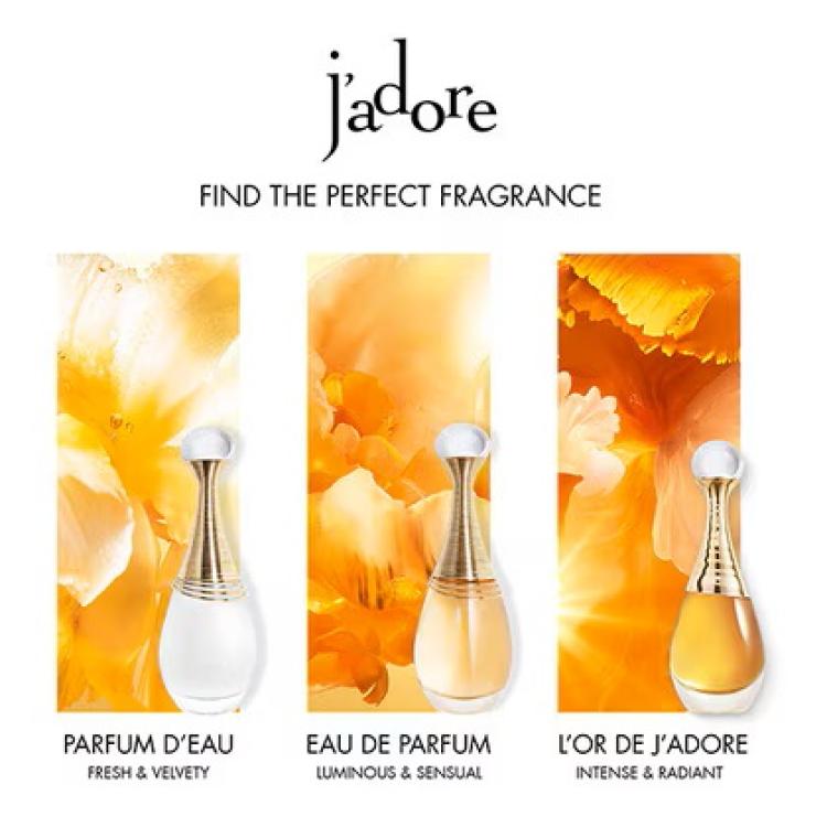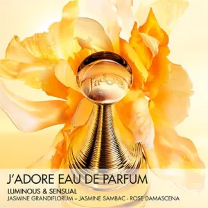 J’adore Eau de Parfum is the great women's floral fragrance by Dior. A bouquet finely crafted down to the last detail, like a custom-made flower. It unites essence of ylang-ylang with its floral-fruity notes; essence of Damascus Rose from Turkey and blend with a rare duo of Jasmine Grandiflorum from Grasse, and Indian Sambac Jasmine with fruity and voluptuous sensuality.