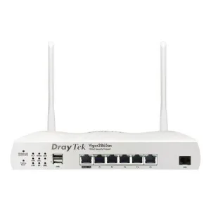 The Vigor2865 Series is a versatile security firewall router that incorporates a DSL modem compatible with various ADSL and VDSL connections, including profile 35b supervectoring. It also features a Gigabit Ethernet WAN port for broadband connections, which can be used for load balancing or as a failover connection. Additionally, the router supports the attachment of 3G/4G/LTE USB modems via its USB ports.