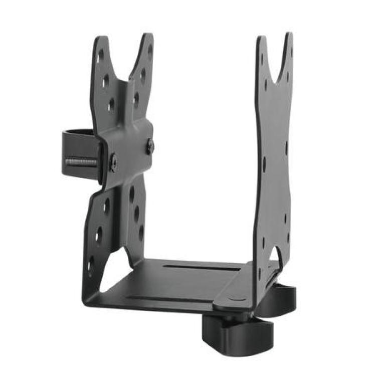 The universal design adapts to the dimensions of the box, while its mounting interface attaches to a variety of surfaces: a VESA plate, directly to a desk, clamped to a pole. Straps are included for increased stability. It’s weight capability is 5kg/11lbs. The adjustable Mini PC Mount Bracket is not only a great organizational tool, but also reduces CPU’s internal contamination and extends equipment life.