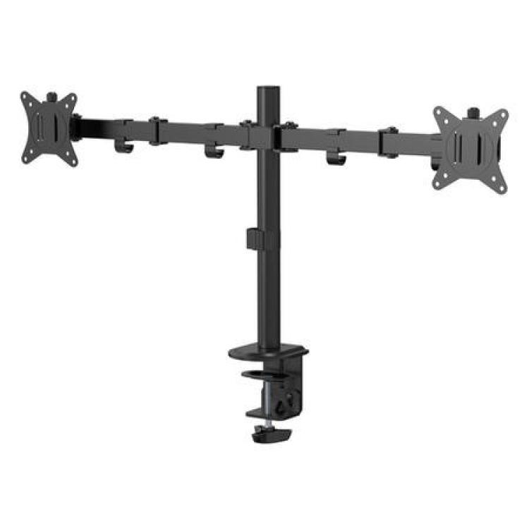 With a durable steel structure, the electriQ Dual Monitor Arm provides stable support for two 17” to 32” monitors up to 9kg(19.8lbs) per arm. Flexible design for ample adjustment and viewing angles, adjustable for either portrait or landscape orientation. Grommet and clamp mounting options included for installation on most any work surface. A detachable VESA plate for user-friendly installation. Cable clips included for an organized and clutter-free workplace.