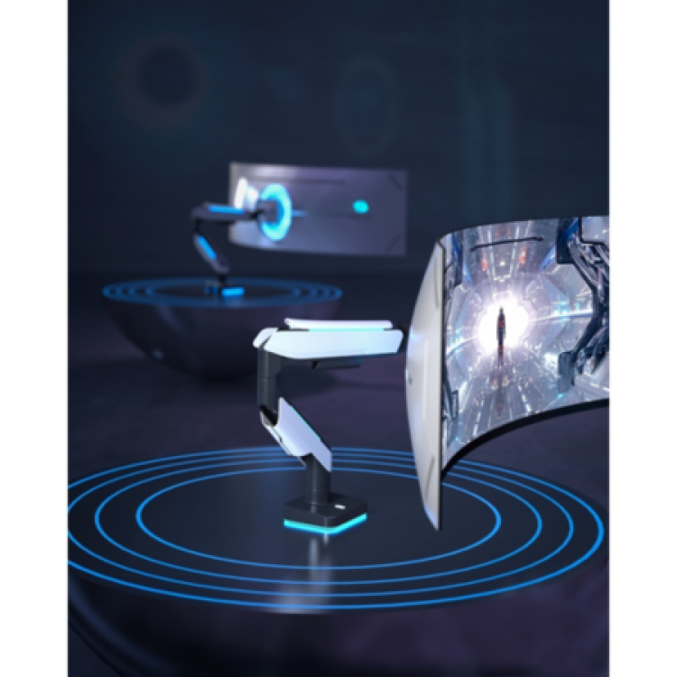 electriQ Premium Gaming Single Monitor Arm for up to 1 x 49" Screen with RGB Lighting to the Base and Arm