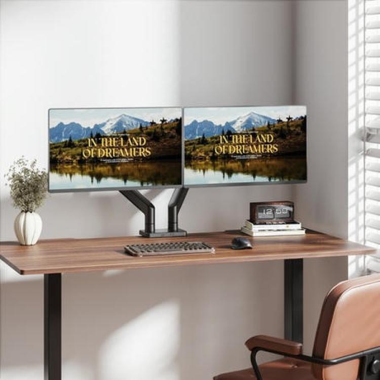 The electriQ Premium Spring Assisted Dual Monitor Arm is equipped with quality springs, and offers effortless height adjustment, tilt, and swivel capabilities, allowing the user to find the perfect ergonomic position for the monitor. Say goodbye to neck and back strain and enjoy the flexibility to customize the viewing experience. Constructed with durable materials and a sturdy design, the monitor arm can securely hold even the heaviest monitors up to 20kg/44Ibs, providing stability and peace of mind. Lifting the monitor off the desk surface gains valuable space to organize essentials and create a more streamlined and efficient environment. Experience the ideal combination of cost-effectiveness, durability, and ergonomic functionality with the Economical Heavy-Duty Spring-Assisted Monitor Arm.