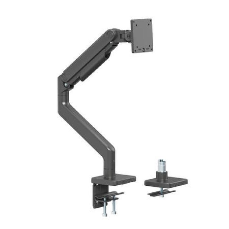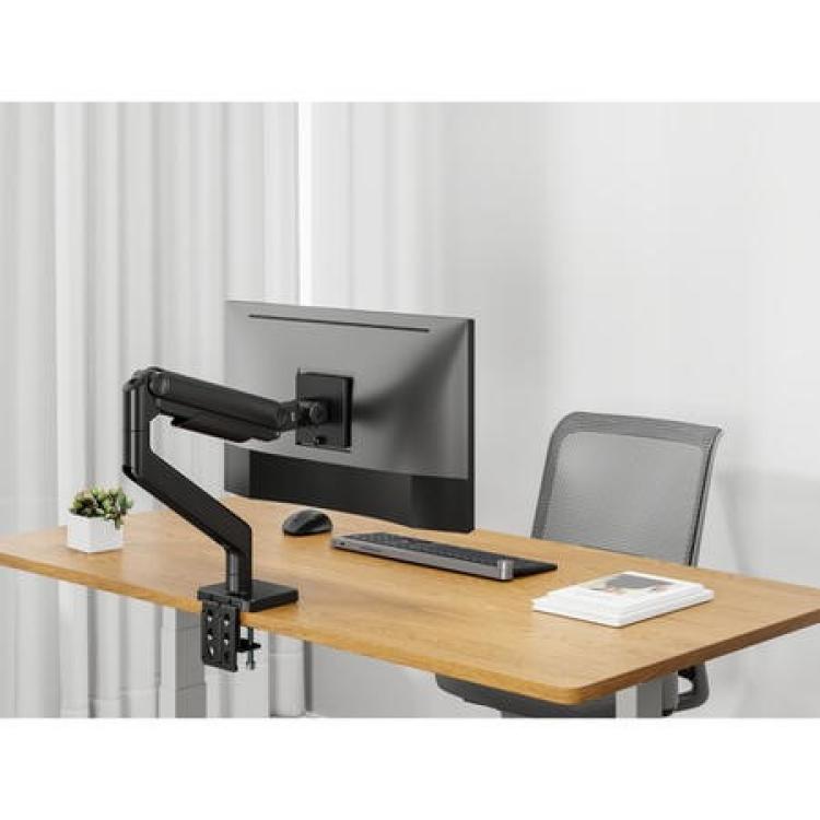 The electriQ Premium Spring Assisted Single Monitor Arm is equipped with quality springs, and offers effortless height adjustment, tilt, and swivel capabilities, allowing the user to find the perfect ergonomic position for the monitor. Say goodbye to neck and back strain and enjoy the flexibility to customize the viewing experience. Constructed with durable materials and a sturdy design, the monitor arm can securely hold even the heaviest monitors up to 20kg/44Ibs, providing stability and peace of mind. Lifting the monitor off the desk surface gains valuable space to organize essentials and create a more streamlined and efficient environment. Experience the ideal combination of cost-effectiveness, durability, and ergonomic functionality with the Economical Heavy-Duty Spring-Assisted Monitor Arm.