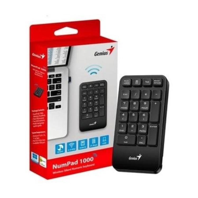 The Genius NumPad 1000 is a slim, wireless and portable numeric keyboard with palm rest, designed for accountants, cashiers, students or anyone needing to enter numbers frequently. Aside from it's slim, ergonomic design, almost-silent operation and additional keys like Esc, Tab, Backspace, and Calculator, it's also very portable and will fit in your pocket or bag for use wherever you are.