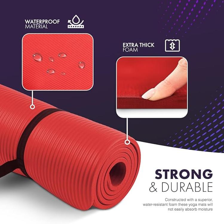 EXTRA LIGHTWEIGHT & PORTABLE: Whether you want to workout in the gym, exercise at work, or practice your yoga poses at home, our exercise mats are light and easy to carry. Simply roll them up and secure with the built-in travelling strap.