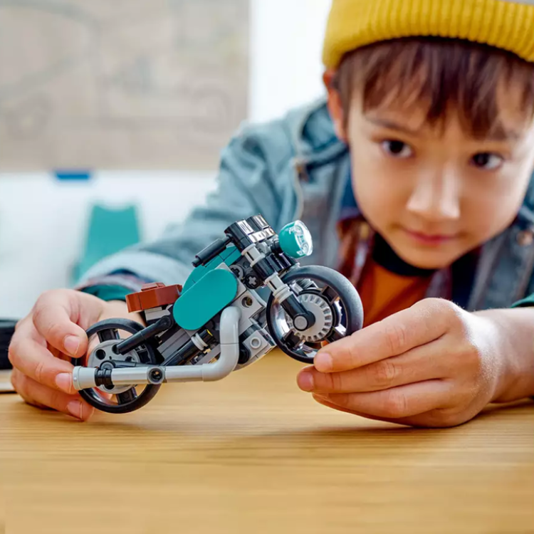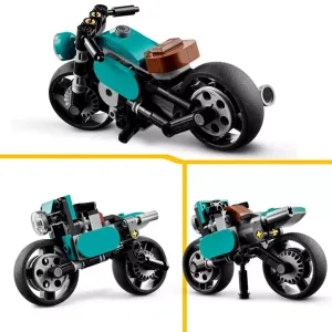 Treat vehicle fans to the LEGO Creator 3in1 Vintage Motorcycle playset, which can be rebuilt into a street bike or top fuel dragster for racing fun.