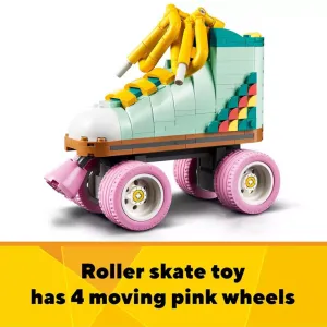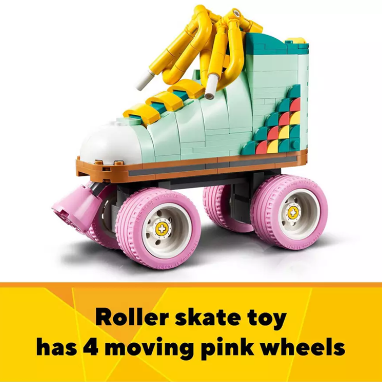 - Creative kids can go back in time with this colourful LEGO Creator Retro Roller Skate (31148) building toy for 8+ year old girls and boys. It features a LEGO roller skate toy with 4 moving pink wheels, a pink stopper, thick yellow laces and a set of colourful pieces for kids to decorate the heel of the boot with their own designs. The roller skate toy measures over 14 cm (5.5 in. ) high, 16 cm (6.5 in. ) long and 7 cm (3 in. ) wide.