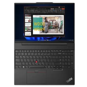 Enjoy the contemporary, professional design of the ThinkPad E16 (16″ AMD) laptop. Its larger, more ergonomic keyboard houses robust keys with better travel, a number pad, and better key spacing to prevent accidental input. The smooth 115mm x 68mm trackpad improves onscreen navigation. And the stunning 16″ display is available in up to WQXGA (2560 x 1600) resolution, with 100% sRGB colour gamut, optional touch, and hardware-based Low Blue Light certification for an excellent visual experience.