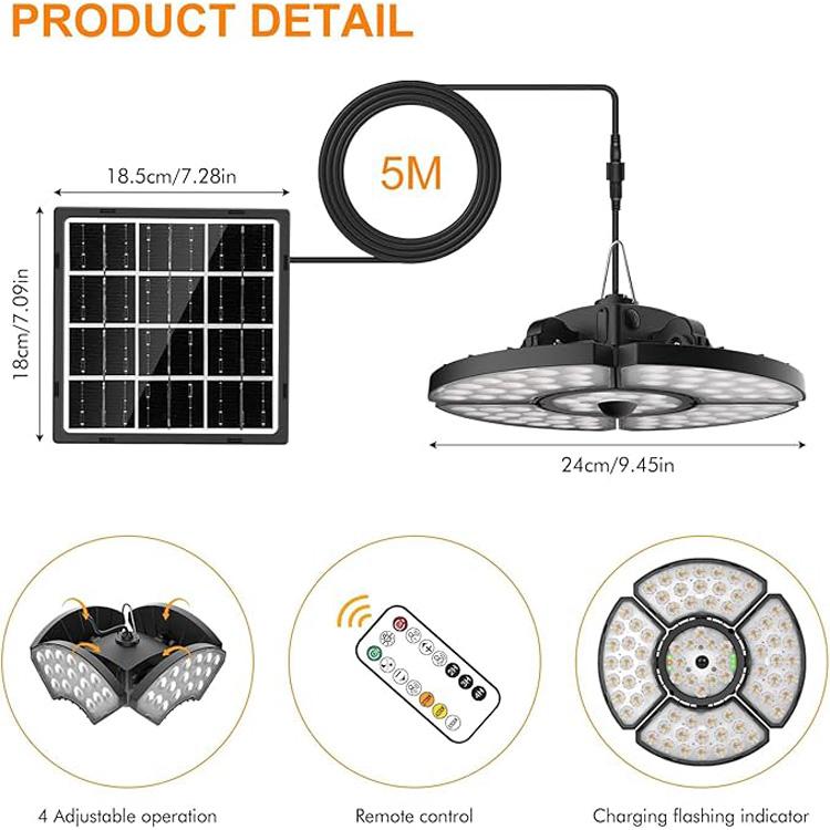 Super Bright 152LEDs: Linke Solar pendant light with 152 high-quality LED beads and 4+1 leaf panels, which can provide greater brightness and illumination range.