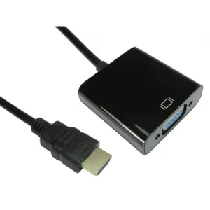 The 77HDMI-VGA01 converts the HDMI digital signal into a VGA analogue signal for use with VGA displays. This model does not have a port for additional power or any audio.