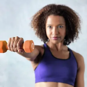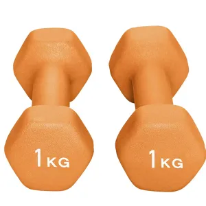 Get in shape and build strength with this set of 1kg neoprene dumbells. Great for beginners and pros alike, they help with a range of movement and exercises for your arms, shoulders and legs. The ergonomic handle gives you a snug grip. Now, get those reps in. Pick up where you left off. The anti-roll design keeps the dumbbell in place when between sets. Sturdy and stackable, they can be stored away safely.