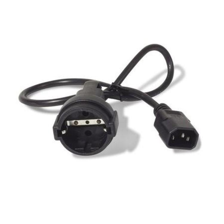 The AP9880 power cord features an IEC-320 C14 input connection, a standard connector type widely used for power distribution in IT equipment and office setups. This connection provides reliable compatibility with a broad range of devices, making it a versatile option for powering servers, UPS systems, and other electronic devices requiring a C14 connector.