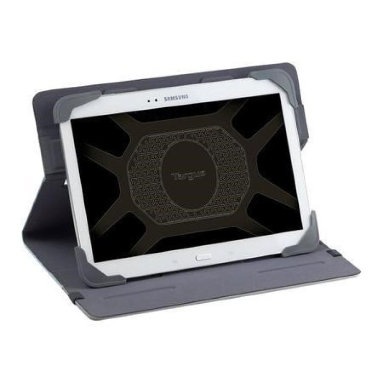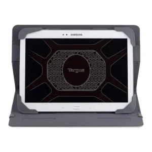 Targus Fit N Grip Rotating Tablet Case is designed to protect 9-10€ devices. A multi-fit tablet case with a stretchy, shock-absorbing silicone system grips your device on all four corners and secures it safely inside. 360° rotating design offers hands-free portrait and landscape viewing. Durable water-resistant cover with secure closure and soft interior protects the device screen. Simply fold back the corner of the cover to reveal your device camera lens and take photos inside the case.