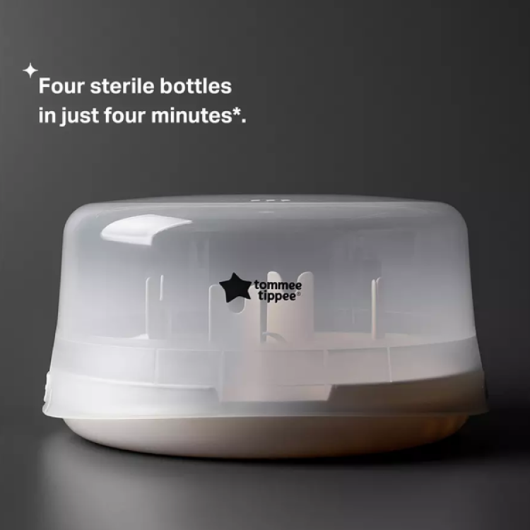 - Time efficient: Thanks to a quick sterilisation cycle of just 4 minutes, Tommee Tippee's Microsteri Microwave Steam Steriliser ensures you have up to for clean, sterile bottles in time for baby's next feed.