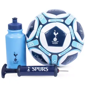This is the perfect set to get you well on the way to playing just like your Spurs heroes! Not only does it include a size 5 football with the signatures of 9 Spurs players printed on the ball, it also comes with an inflating pump to keep the ball full of air at all times and a 500ml water bottle to keep you hydrated so you can practise for longer. Comes in a printed colour box.