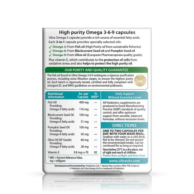 Ultra Omega-3 capsules provide a rich source of essential fatty acids.