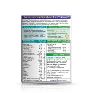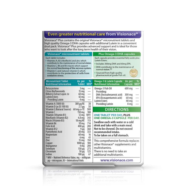 Extra care for your vision, Visionace Plus combines our trusted Visionace Original formula with essential Omega-3 fatty acids.