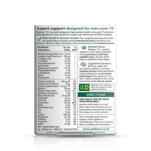 A carefully formulated supplement for men 70 and over, specially developed to support areas of health particularly relevant to men in the later stages of life, such as; heart, brain, energy, vision, immune and general health & vitality. From Wellman, the UK's number 1 men's supplement brand.