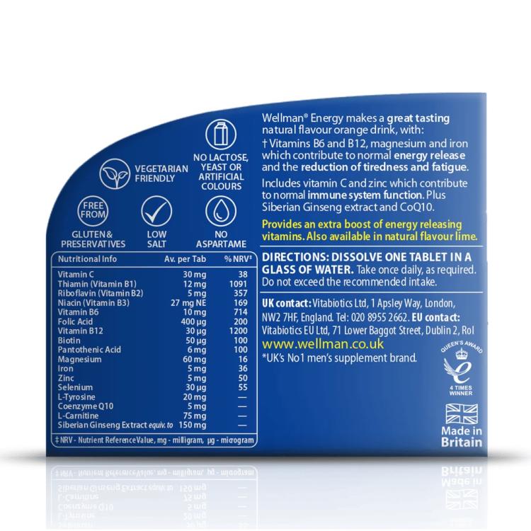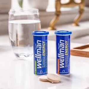 Our fabulous energy effervescent tablets for men that dissolves into a delicious drink. An ideal nutritional boost which can be taken independently or in conjunction with your other Wellman vitamins. From the UK’s No.1 men’s supplement brand.