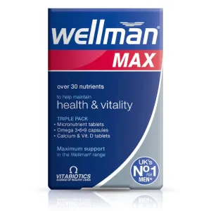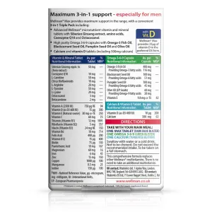 Our ultimate daily supplement for men. A 3-in-1 multivitamin triple pack with comprehensive all round support for key areas of health, such as energy, immune system, testosterone levels, bone health, brain, heart and vision. Wellman is also the UK’s No.1 men's supplement brand.