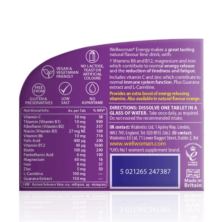 Our fabulous energy effervescent tablet for women that dissolves into a delicious drink. An ideal nutritional boost with 13 nutrients which can be taken independently or in conjunction with your other Wellwoman vitamins. From the UK's No.1 women's supplement brand.