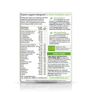 Premium nutritional support for women actively involved in fitness, sports and gym. Includes 28 nutrients that support performance, including iron which contributes to the reduction of tiredness and fatigue. From Wellwoman, the UK's number 1 women's supplement brand.