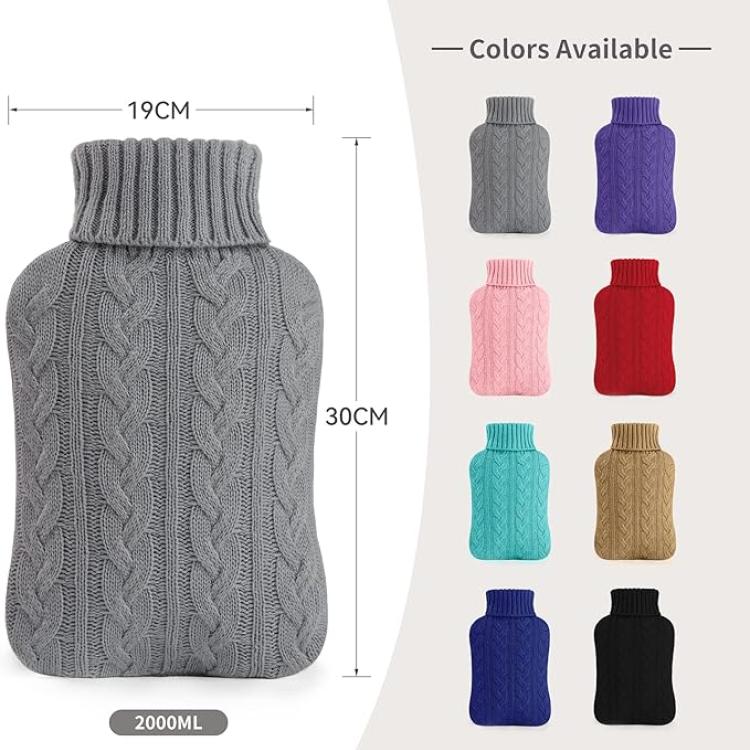 Made of premium material, more durable. Hot water bottle can be used as hot or cold compress to relieve muscle soreness, dysmenorrhea, and sports injuries.