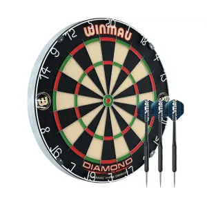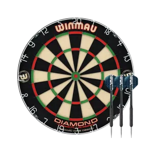 Includes a set of Winmau deluxe darts. Flight designs may vary.